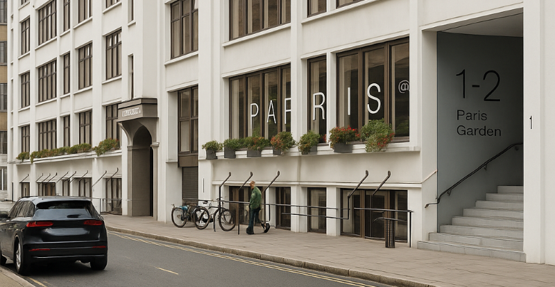 Located centrally at 1 Paris Garden, London, SE1 8ND, walking distance from Southwark, Waterloo and Blackfriars stations — easily accessible.